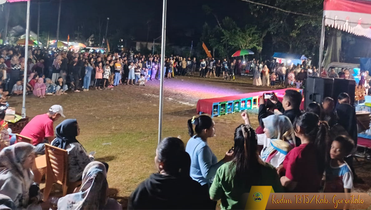 Tilango, 17 Agustus 2025 – Suasana malam terasa penuh semangat kebersamaan ketika Serda Irfan Suryadi, Babinsa Koramil 1315-01/Telaga, hadir dalam kegiatan penutupan Festival Pemuda Merdeka dan Panggung Rakyat yang berkolaborasi dengan Badan Narkotika Nasional (BNN) dalam rangka memperingati HUT RI Ke-80 Tahun 2025. Kegiatan tersebut digelar pada Minggu malam, pukul 21.00 Wita, bertempat di lapangan Mbui Bungale, Desa Lauwonu, Kecamatan Tilango, Kabupaten Gorontalo.