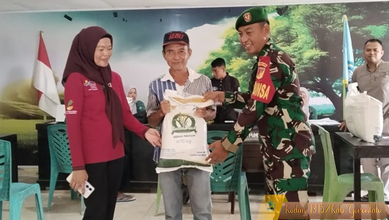 Bersama Rakyat, Babinsa Tibawa Salurkan Beras Bulog ke Warga Desa Puncak Kecamatan Pulubala