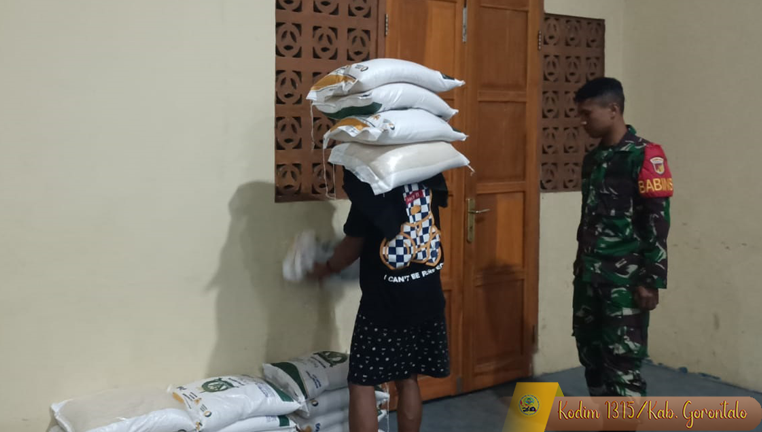 Meskipun tidak diwarnai kemeriahan, kegiatan ini adalah wujud nyata kepedulian lintas sektor. Di tengah tumpukan karung-karung beras, hadir keharmonisan antara Babinsa dan aparatur desa, antara negara dan warganya.