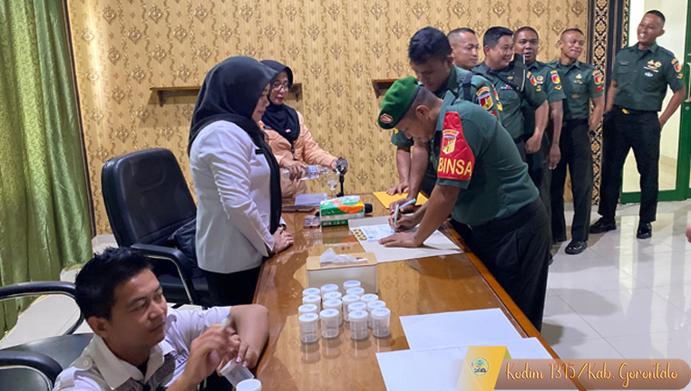 Cegah Penyalahgunaan Narkoba, Kodim 1315/Kab. Gorontalo Laksanakan Penyuluhan dan Tes Urine