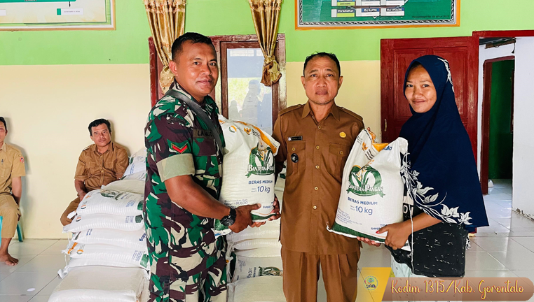Kegiatan ini turut dihadiri oleh Kepala Desa Olimeyala, Hamzah Ismail, A.Ma.Pd., bersama Sekretaris Desa, Isman Tamrin, para Kepala Dusun, dan masyarakat penerima bantuan. Suasana terasa akrab dan tertib, memperlihatkan sinergi nyata antara aparatur pemerintah desa, TNI, dan rakyat. Semua elemen hadir dengan tujuan yang sama: memastikan beras sampai ke tangan yang berhak.