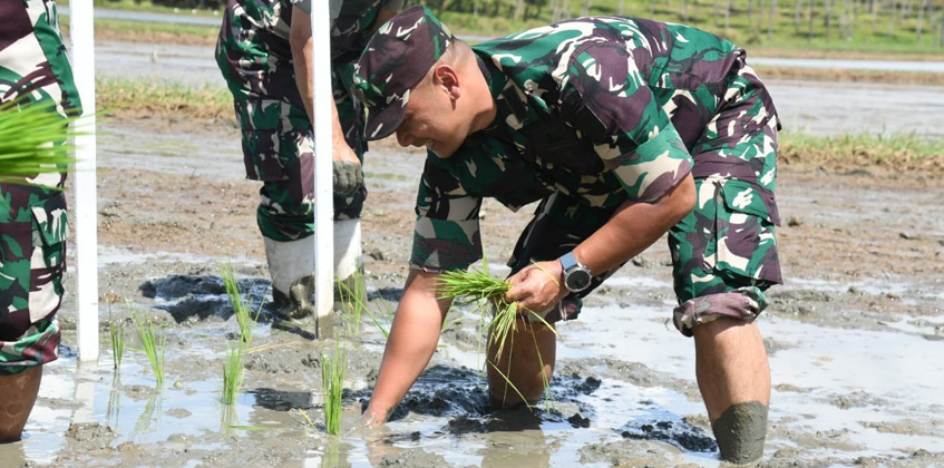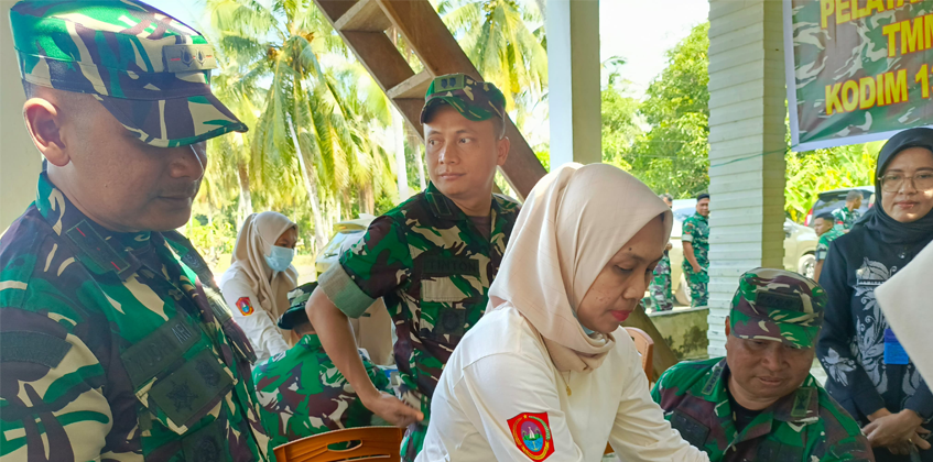 Usai pelaksanaan upacara, kegiatan dilanjutkan dengan peninjauan pelayanan pengobatan gratis dan penyerahan bantuan untuk anak-anak penderita stunting. Kegiatan ini menunjukkan kepedulian TMMD terhadap aspek kesehatan masyarakat. Danrem 133/NW dan Pj. Bupati Gorontalo Utara bersama rombongan kemudian meninjau langsung lokasi pembukaan badan jalan, sebagai bagian dari proyek fisik TMMD. Selain itu, rombongan juga mengunjungi lokasi lahan ketahanan pangan berupa area tanaman padi dan turut serta dalam kegiatan penanaman padi bersama para petani, sebagai simbol dukungan terhadap ketahanan pangan lokal.