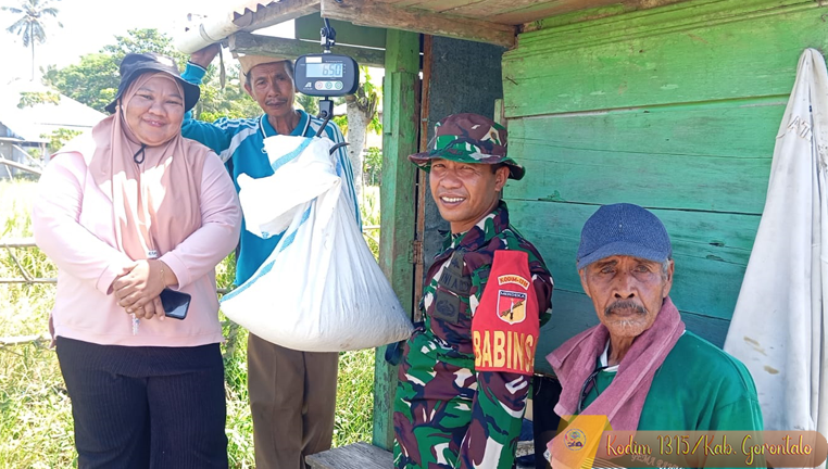 Tak sendiri, dalam kegiatan ini Sertu Arlin turut didampingi oleh Yuningsi S. Bau, selaku Petugas Penyuluh Lapangan (PPL) dari Kelurahan Tenilo. Hadir pula Ketua Kelompok Tani Alibotu, Isran Djaelani, beserta seluruh anggota kelompok tani yang bersama-sama melakukan pengukuran dan penimbangan hasil panen.