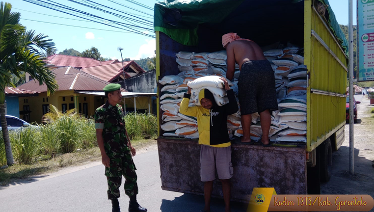 Dengan dedikasi tinggi dan jiwa pengabdian, Koptu Bambang Julianto, Babinsa Koramil 1315-01/Telaga, hadir mengawal proses distribusi bantuan beras di Desa Pilohayanga. Sebanyak 436 karung beras untuk 218 Kepala Keluarga berhasil disalurkan dengan tertib. Suasana aman dan lancar menjadi bukti komitmen Babinsa dalam menjaga kesejahteraan warga binaannya.