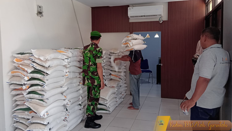 Bantuan berupa beras sebanyak 436 karung yang diperuntukkan bagi 218 KK terlebih dahulu didrop di kantor desa, sebagai titik kumpul awal sebelum disalurkan langsung kepada masyarakat. Babinsa dan aparat desa melakukan pengecekan terhadap jumlah dan kondisi bantuan, kemudian menyusun proses distribusi agar berjalan lancar dan adil sesuai data yang ada.