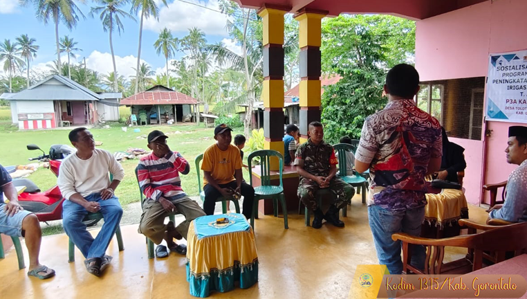 Tibawa, 04 Agustus 2025 – Suasana Desa Tolotio siang itu terasa lebih hidup dari biasanya. Di rumah Bapak Daud Ali, Ketua Perkumpulan Petani Pemakai Air (P3A), digelar sebuah agenda penting: Sosialisasi dan Musyawarah Desa (Musdes) 2 Program Percepatan Peningkatan Tata Guna Air Irigasi (P3-TGAI) Tahun Anggaran 2025. Kegiatan dimulai pukul 13.30 Wita dan dihadiri langsung oleh Koptu Manna, Babinsa Koramil 1315-04/Tibawa, sebagai wujud pendampingan dan dukungan TNI terhadap pembangunan pertanian di wilayah binaannya.