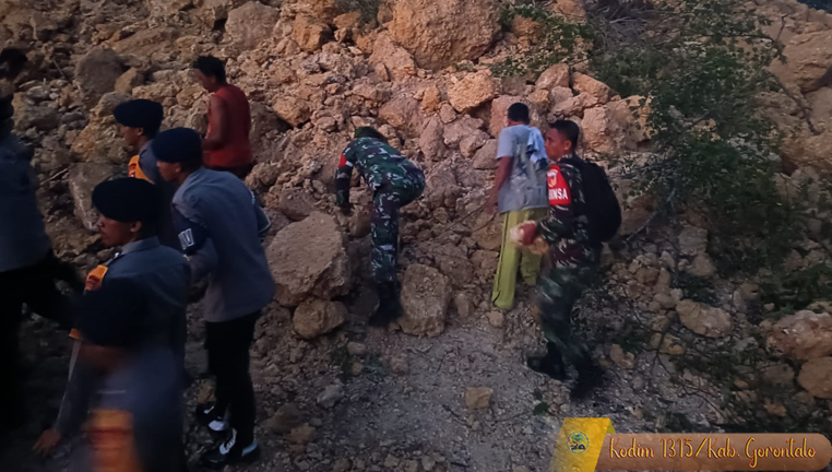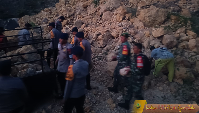 Mendapat laporan dari warga, Koramil 1315-04/Tibawa bersama aparat setempat langsung merespons cepat. Mereka segera mendatangi lokasi, menilai situasi, dan mengambil inisiatif melakukan kerja bakti darurat sambil menunggu peralatan berat dari BPBD.