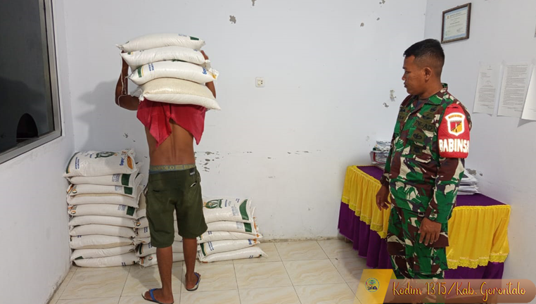 Langkah Nyata Babinsa Peduli Warga, Dampingi Pendistribusian Beras Bulog Digelar di Limehe Barat