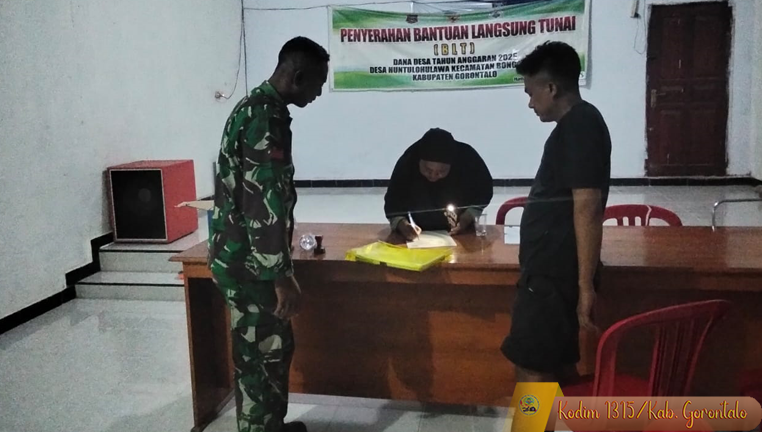 Kegiatan pendistribusian ini juga dihadiri oleh unsur pemerintahan desa yang turut berperan aktif, antara lain Supardi Dehi selaku Kepala Desa Huntulohulawa, Santi Lasena sebagai Kepala Seksi Kesejahteraan, serta Amrin S. Gagulu yang menjabat sebagai Bendahara Desa. Kolaborasi antara Babinsa dan aparat desa menciptakan sinergi yang solid demi terselenggaranya program bantuan pangan dengan tertib dan tepat sasaran.