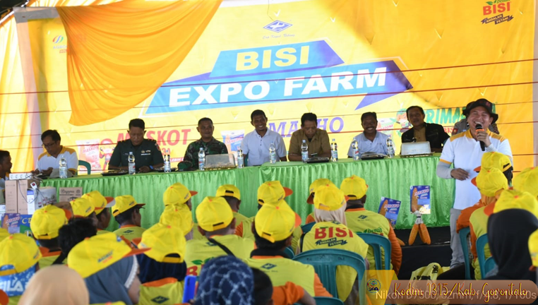 Dalam sambutannya, Rion Exata menyampaikan apresiasi dan terima kasih kepada seluruh pihak yang telah hadir dan mendukung kegiatan ini. Ia menjelaskan bahwa PT Bisi berkomitmen menyediakan benih unggul berkualitas tinggi demi mendorong produktivitas jagung. Kami perkenalkan tiga varietas unggulan kami: Benih Macho yang memiliki masa panen cepat dan tongkol besar, Benih Maskot yang tahan terhadap hama serta cocok untuk dataran rendah, dan Benih Primadona yang kadar airnya rendah dan hasil panennya tinggi sangat ideal untuk kebutuhan pasar,” ujarnya. Ia juga menegaskan bahwa PT Bisi akan terus mendampingi petani melalui pelatihan, penyuluhan, serta akses teknologi pertanian modern untuk meningkatkan kesejahteraan petani.