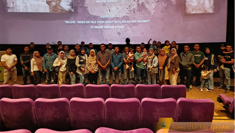 Gorontalo, 28 Juli 2025 – Suasana berbeda tampak di Bioskop XXI City Mall Gorontalo sore itu. Deretan seragam loreng dan senyum hangat memenuhi lobi bioskop, bukan untuk misi pengamanan, tapi untuk sebuah kegiatan yang tak kalah penting: menonton bareng film “Believe”. Kegiatan ini dipimpin langsung oleh Lettu Inf Bambang I.M, Danramil 1315-01/Telaga, pada Senin, 28 Juli 2025 pukul 16.50 Wita, bertempat di Jln. Sultan Botutihe, Kecamatan Kota Timur, Kota Gorontalo.