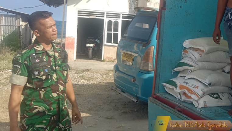 Mengabdi Lewat Aksi Nyata, Sertu L. Saifuddin Dampingi Penyaluran Beras Bulog untuk Warga Bongo