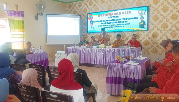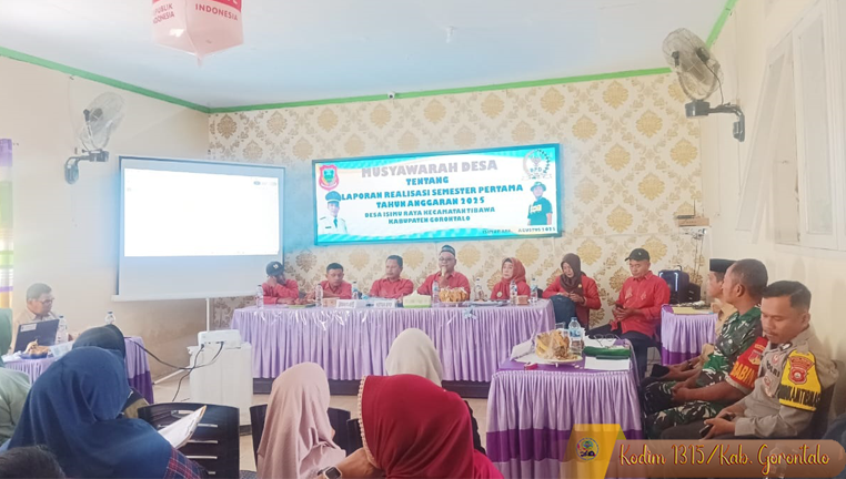 Tibawa, 14 Agustus 2025 – Suasana aula kantor Desa Isimu Raya pada Kamis pagi dipenuhi semangat kebersamaan. Serda Agus R, Babinsa Koramil 1315-04/Tibawa, hadir mendampingi jalannya Musyawarah Desa yang membahas laporan realisasi semester I Tahun Anggaran 2025 sekaligus menetapkan perubahan RKPDes Tahun 2025. Kegiatan dimulai pukul 10.00 Wita dengan dihadiri unsur pemerintahan, keamanan, serta masyarakat setempat.