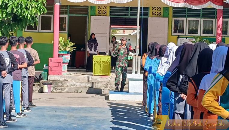 Boliyohuto, 08 Juli 2025 – Dalam rangka menyambut tahun ajaran baru, SMP Negeri 1 Asparaga menyelenggarakan kegiatan Masa Pengenalan Lingkungan Sekolah (MPLS) bagi siswa baru tahun 2025. Salah satu agenda utama dalam kegiatan ini adalah penyampaian materi oleh Babinsa Koramil 1315-05/Boliyohuto, Serka Laode Kalawara, yang berlangsung pada Rabu, 08 Juli 2025 pukul 08.30 Wita bertempat di lingkungan sekolah SMP Negeri 1 Asparaga.