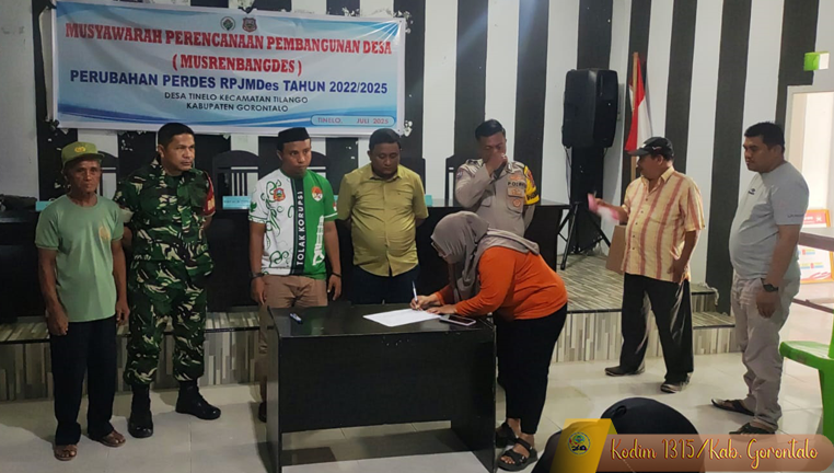 Perubahan Rencana Pemerintah Desa Tahun 2025: Babinsa Telaga Hadiri Musrenbangdes Tinelo