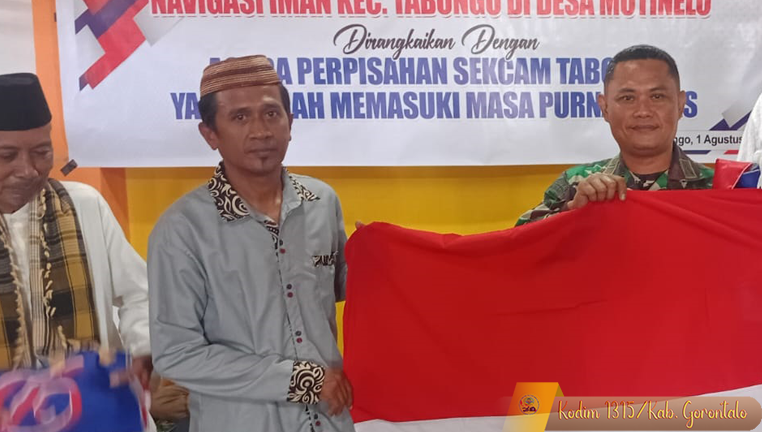 Tabongo, 01 Agustus 2025 – Suasana semangat kebangsaan terasa begitu kuat di wilayah Kecamatan Tabongo pagi itu. Di tengah terik matahari yang mulai menyinari bumi Gorontalo, Danramil 1315-03/Tabongo, Lettu Inf Indra Mooduto, bersama Camat Tabongo Anton Panani, S. Pd, anggota Koramil, serta Kepala Desa Motinelo, tampak kompak melaksanakan kegiatan pembagian 100 lembar bendera Merah Putih beserta umbul-umbul kepada masyarakat Desa Motinelo.