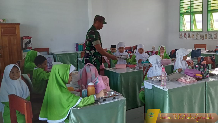 Telaga, 25 Juli 2025 – Pagi yang cerah di Kecamatan Telaga menjadi saksi kepedulian berbagai pihak terhadap masa depan generasi muda Indonesia. Serda Amar, Babinsa Koramil 1315-01/Telaga, turut hadir mendampingi kegiatan Makan Bergizi Gratis (MBG) bersama Arisanti Cheline Kukus, S. Kep.Ns., Kepala Dapur MBG Kecamatan Telaga. Kegiatan ini berlangsung serentak di sejumlah sekolah, yakni SMP Negeri 1 Telaga, SMP Negeri 2 Telaga, SD Negeri 3 Telaga, dan TK Dahlia, pada Jumat, 25 Juli 2025, mulai pukul 08.00 Wita.