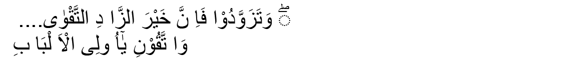 "Wa tazawwaduu fa inna khoiroz-zaadit-taqwaa, wattaquuni yaa ulil-albaab"