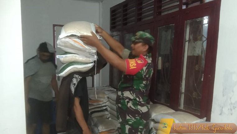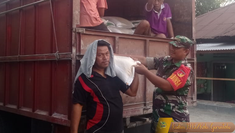 Sertu Sukirno Kawal Pendistribusian Beras Bulog di Desa Tualango