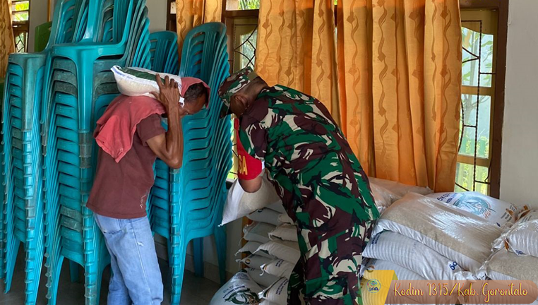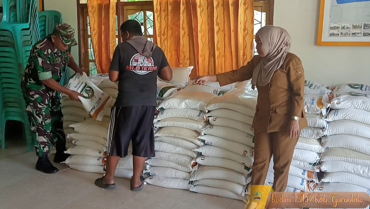Sinergi TNI dan Pemerintah, Babinsa Telaga Distribusikan Beras Bulog ke Masyarakat Tenggela