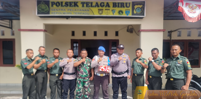 Pada pukul 09.45 Wita, personil Koramil 1315-01/Telaga Biru terlebih dahulu mengunjungi Polsek Telaga. Mereka memberikan ucapan selamat Hari Bhayangkara ke-79 yang diterima langsung oleh Aiptu Adam bersama anggota Polsek lainnya dengan penuh keakraban dan semangat sinergitas.