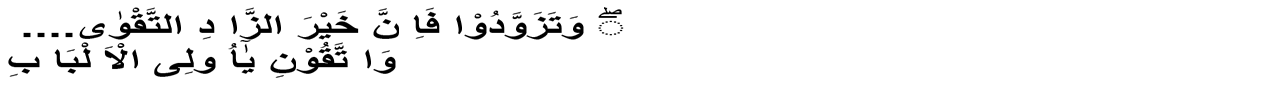 Wa tazawwaduu fa inna khoiroz-zaadit-taqwaa, wattaquuni yaa ulil-albaab