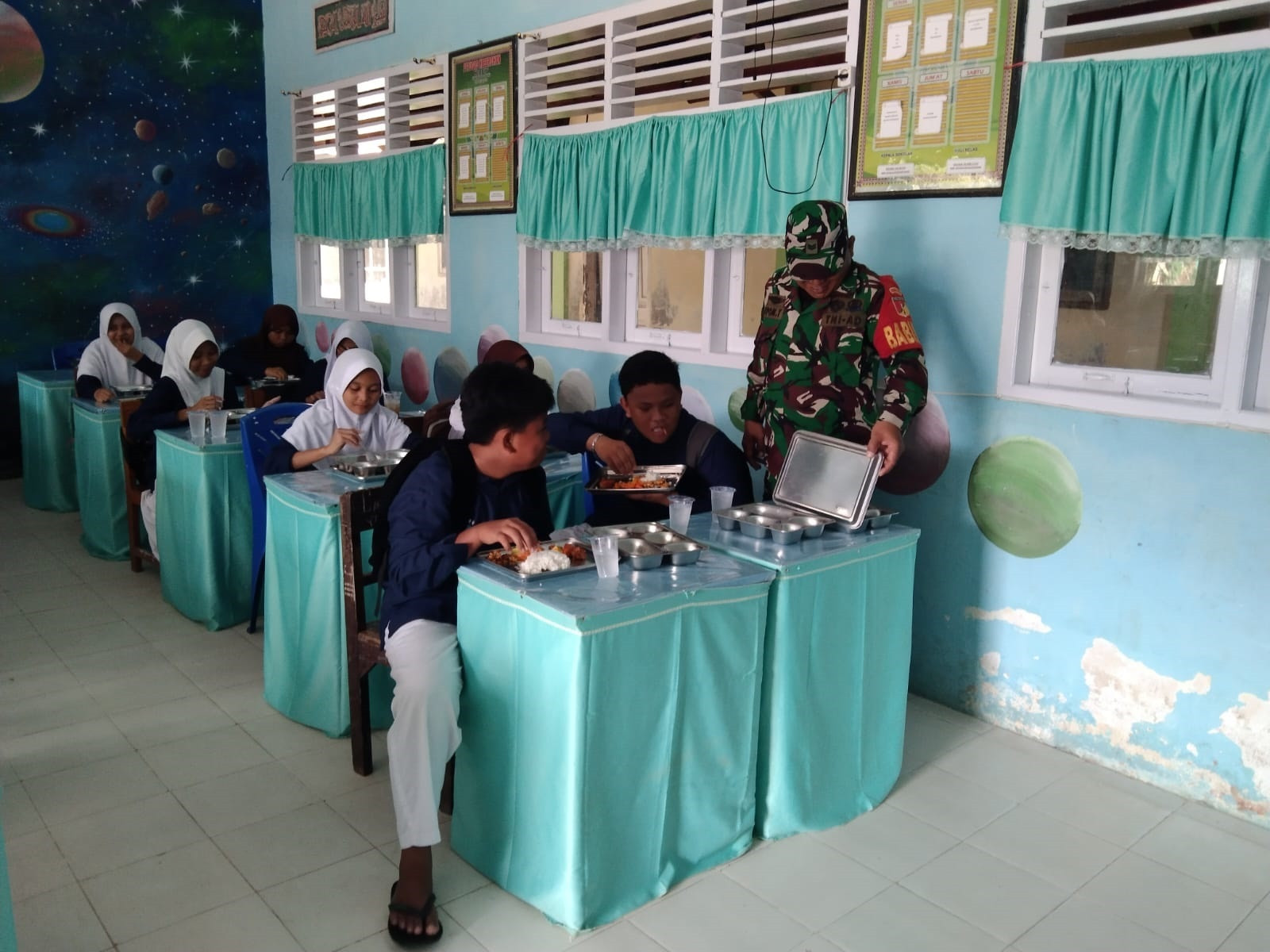 Babinsa Koramil 1315-05 Boliyohuto Dampingi Pelaksanaan Makan Bergizi Gratis Sekolah Siswa Kecamatan Asparaga Gorontalo