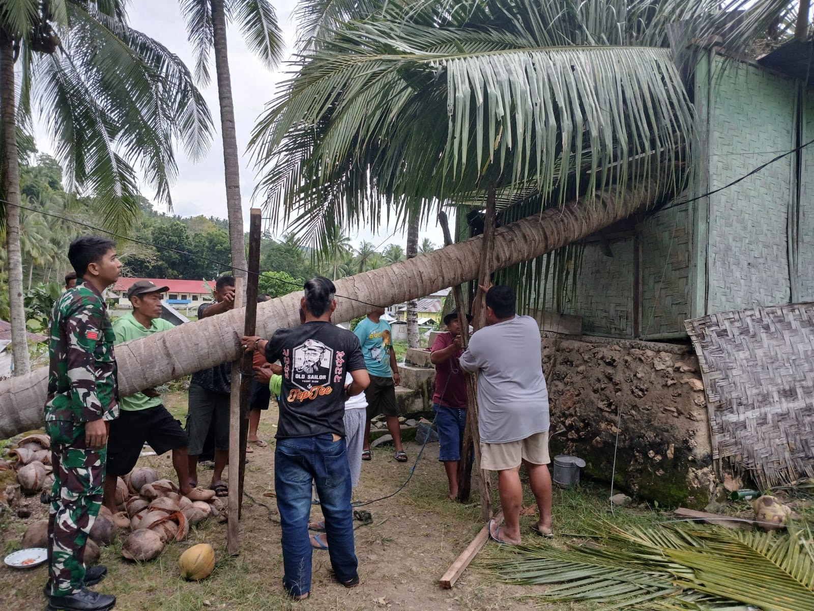 Koramil 1315-03 Tabongo Gerak Cepat, Babinsa Bantu Warga Rumah Rusak Tertimpa Pohon Kelapa Saat Angin Puting Beliung