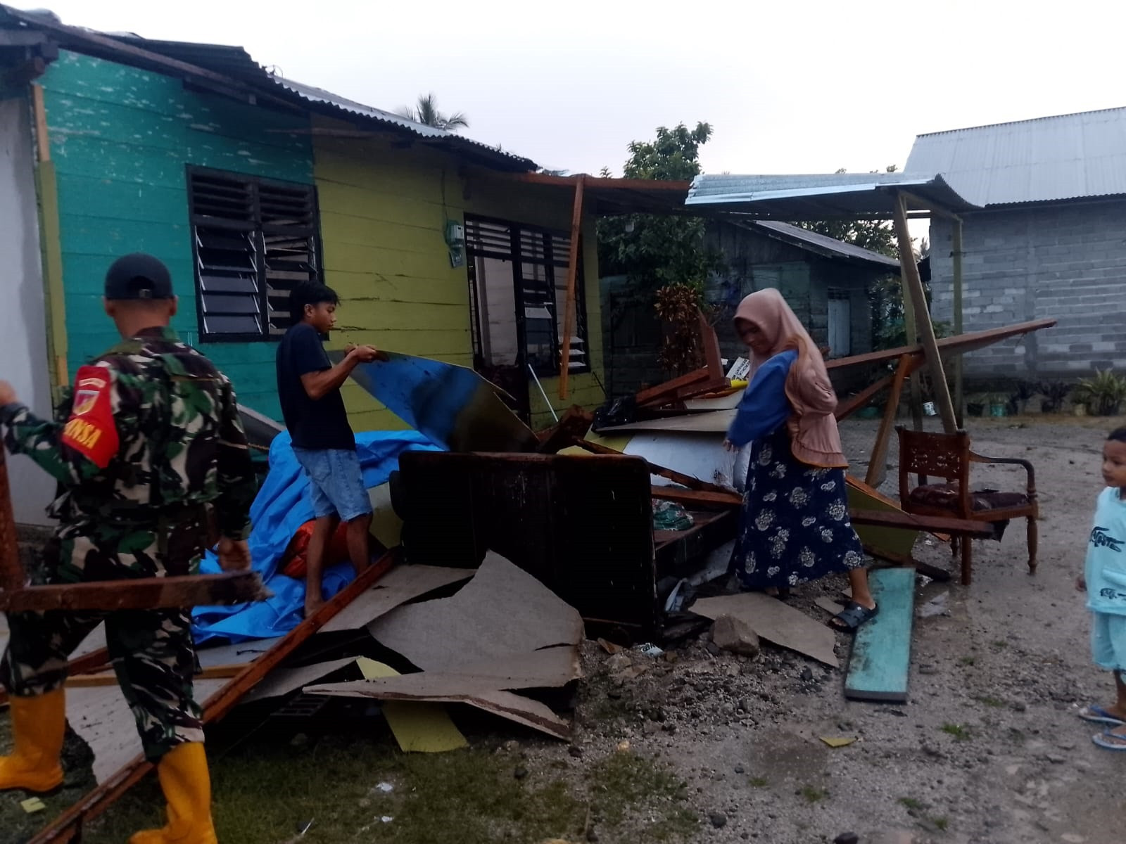 Hujan Deras dan Angin Kencang Rusak Rumah Warga, Babinsa Koramil 1315-05/Boliyohuto Sigap Turun Tangan