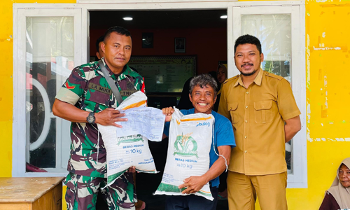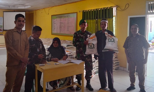 Wujud TNI Peduli, Sertu Sucipto Dampingi Penyaluran Beras di Luluo