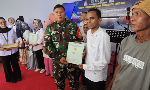 Babinsa Koramil 1315-02 Limboto Kopda Haryono Hadiri Penyerahan Sertifikat PTSL Desa Huidu