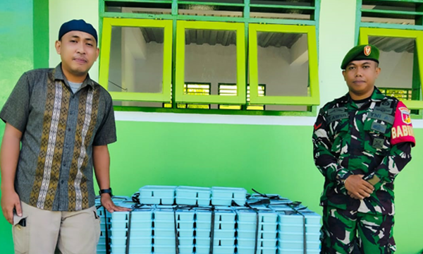 Babinsa Ramil 1315-01/Telaga Kopda Syaiful Kawal Kegiatan Makan Bergizi Gratis untuk Ribuan Siswa
