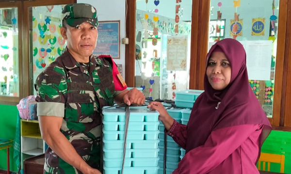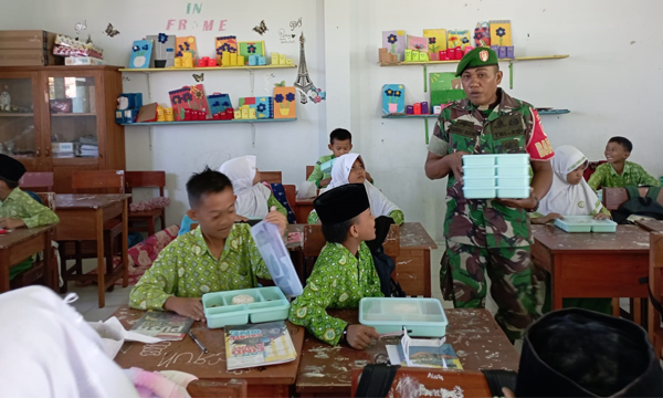 Sertu Jalil Dampingi Penyaluran Makanan Bergizi Gratis untuk 2.735 Siswa di Telaga Biru