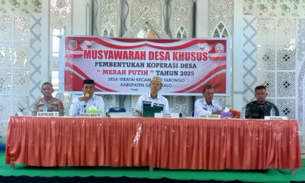 Gorontalo, 07 Mei 2025 - Musyawarah Desa Khusus Pembentukan Koperasi Desa Merah Putih tahun 2025. Kegiatan ini menjadi tonggak penting dalam upaya pemberdayaan ekonomi masyarakat desa, yang dihadiri oleh sejumlah tokoh . . . 0