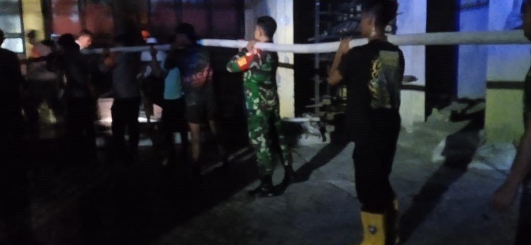 Babinsa Koramil 1315-04/Tibawa Turun Tangan Padamkan Api Kebakaran Hebat Toko Akibat Korsleting