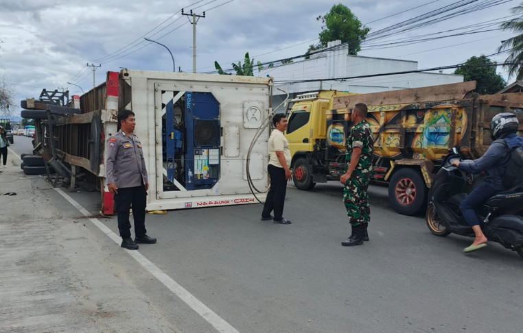 Gorontalo, 19 Desember 2025 – Arus lalu lintas di Jalan Trans Pentadio Barat, Kecamatan Telaga Biru, Kabupaten Gorontalo, sempat tersendat akibat sebuah kontainer pengangkut buah milik PT Laris Manis Utama . . . 0