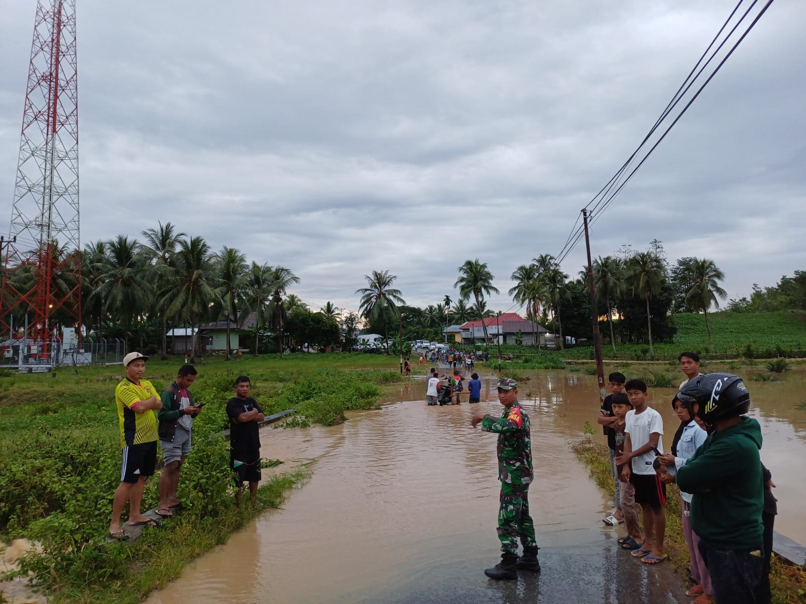 Curah Hujan Tinggi Picu Luapan Sungai di Desa Prima Babinsa dan Pemerintah Desa Berkoordinasi Atasi Genangan Air