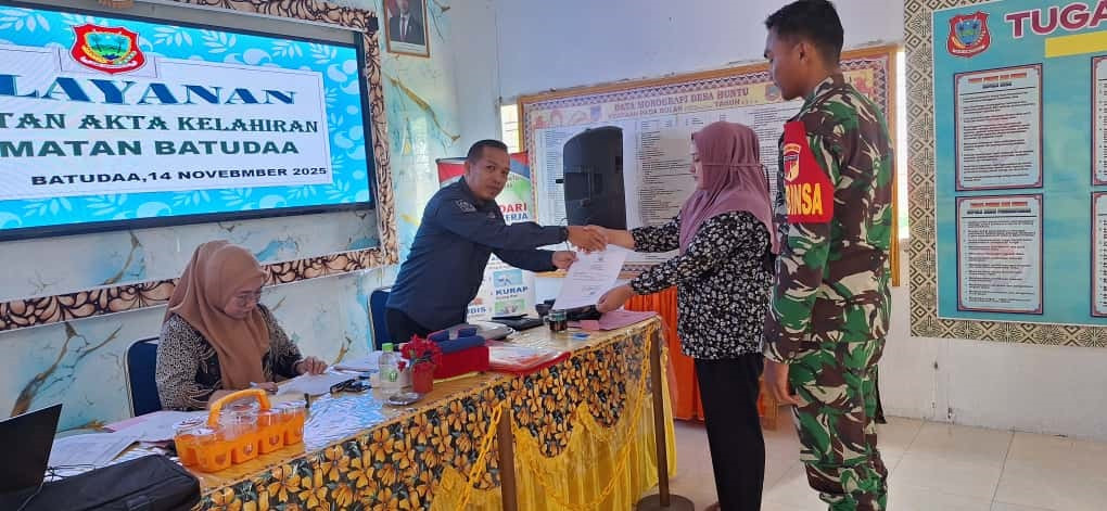 Pelayanan akta kelahiran se-Kecamatan Batudaa memberi kemudahan besar bagi masyarakat melalui pendekatan jemput bola yang dilakukan Dinas Dukcapil Kabupaten Gorontalo