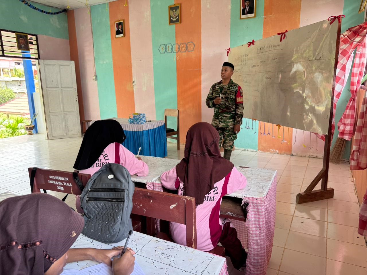 Ketulusan Seorang Prajurit Satgas TMMD Mengajarkan Huruf Hijaiyah dan Menyalakan Semangat Religi Anak-anak di SMPN 4 Satap Telaga Biru