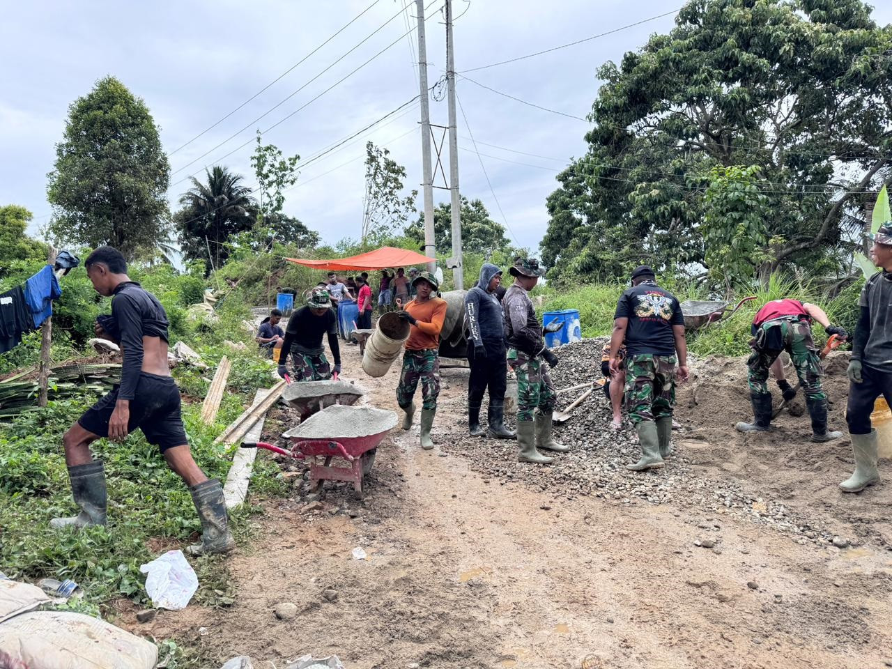 Mendung Tak Menggoyahkan Tekad, Prajurit TMMD ke-126 Tetap Bangun Jalan di Desa Tonala Meski Langit Muram