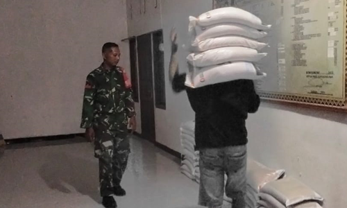 Babinsa Hadir untuk Rakyat, Praka Kristonny Kawal Distribusi Beras di Duwanga