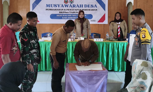 Babinsa Koramil Tibawa Hadiri Musdes Perubahan RKPDes, Wujudkan Pembangunan Partisipatif di Balahu