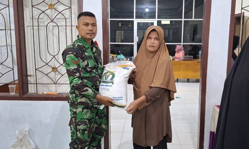 Tingkatkan Kepedulian Sosial, Serda Amirul Dampingi Pembagian Beras Bulog di Bulota