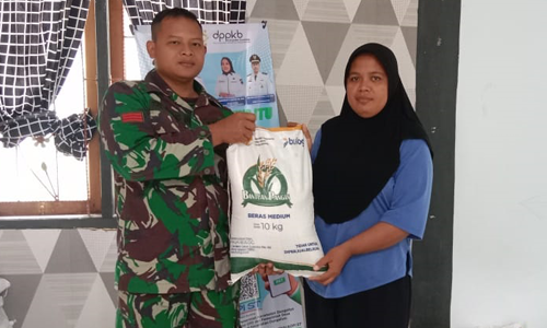 Kopda Bihanam Dampingi Penyaluran Beras Bulog untuk Warga Desa Isimu Utara